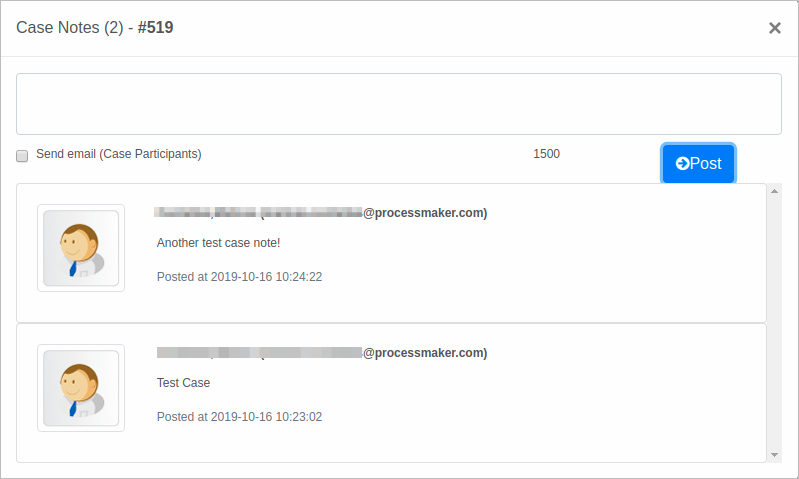• A checkbox to be ticked to notify the users involved in the case (optional).