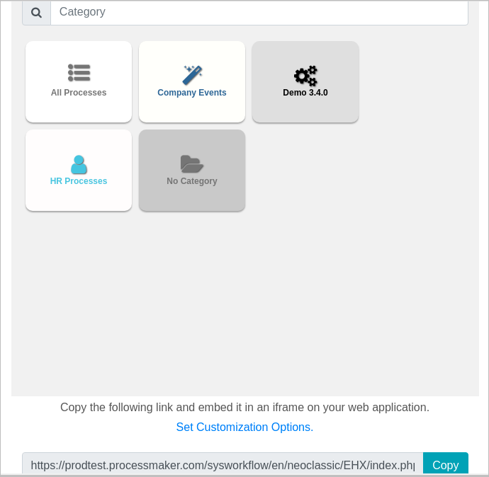 1. From the Process Categories option, select which category to customize. A preview displays how the category displays from the generated URL.