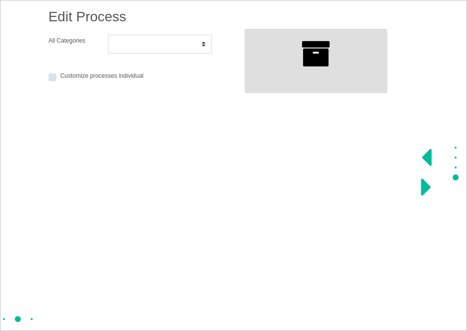 You can save your changes by clicking Save, or you can go back to editing by clicking the green arrow. Check the Would you like to edit the processes one by one for the selected category? option to be able to change the icons and color of the process in the selected category and save the changes one by one.