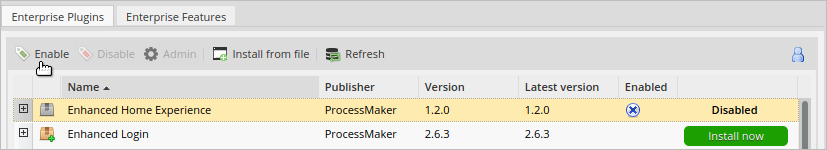 3. In the Enterprise Plugins tab, install the Enhanced Home Experience plugin doing one of the following:
