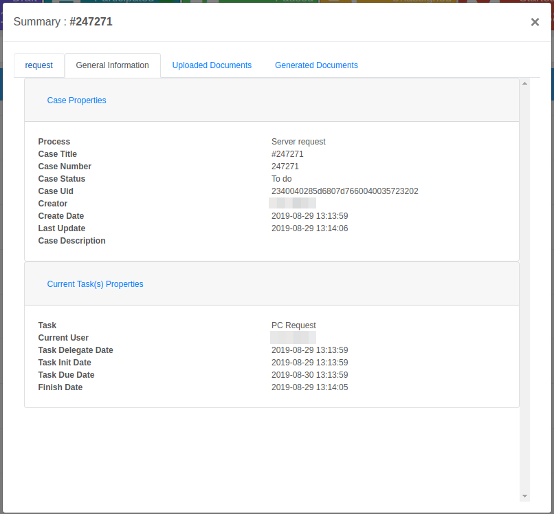 • Task: Display the name of the task where the case is at the moment in the flow of the process.