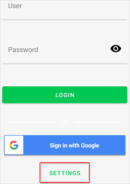After the server is configured correctly, the Settings screen displays again. To go back to the logon screen, tap the arrow button at the top left of the Settings screen.