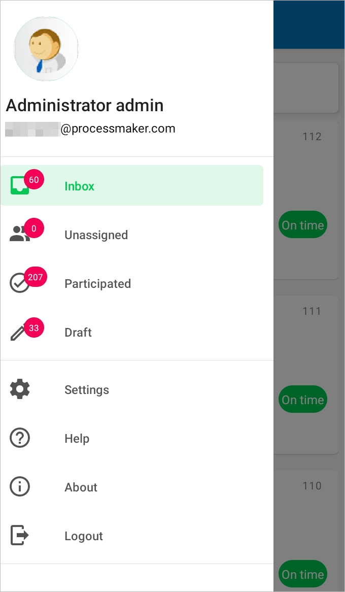 Now, it is possible to log on to the ProcessMaker mobile app. To configure and see additional options in Settings, see Settings.