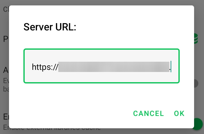 The Server URL window displays to enter the server URL. In this field, type the server URL such as