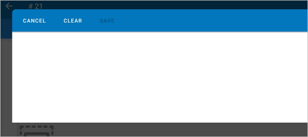 The application uses webkit tools exclusively for Android and iOS to display the form fields, thus forms are not rendered the same way as in the web edition (in the preview of the designer or when running cases). When the control is tapped a new window appears where a signature can be placed. The signature can be deleted by tapping on Cancel, to erase the signature and make a new one tap on Clear, or save the signature by tapping on Save. The screenshot below shows the Signature control field running on the mobile app.