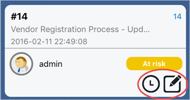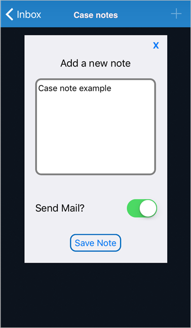 Add a case note to a case by tapping on the clock-pencil icon in the bottom right corner of any case.