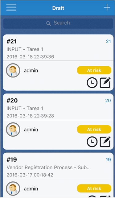 Work with cases directly from the ProcessMaker Mobile app using the Case List button. The Case List button is in the upper left side of the screen; it is the icon that has three horizontal lines.