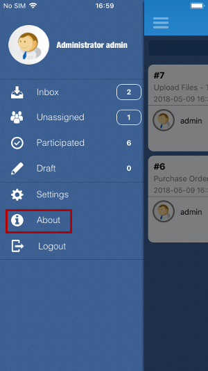 Go to the main menu by sliding the screen to the right. Click on the About button.