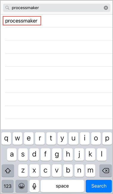 Start typing "ProcessMaker", and the first option that appears is the ProcessMaker Mobile application, which must be tapped to proceed with the installation. Observe the image below: