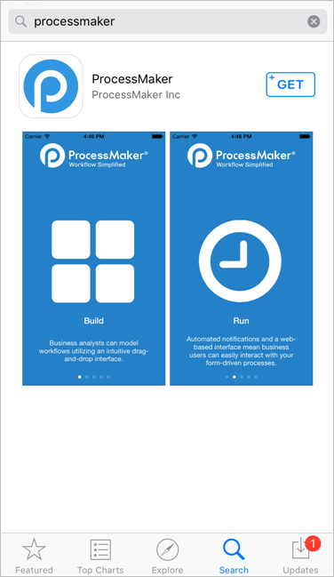 Now, it is possible to download the ProcessMaker app by tapping on the GET button.