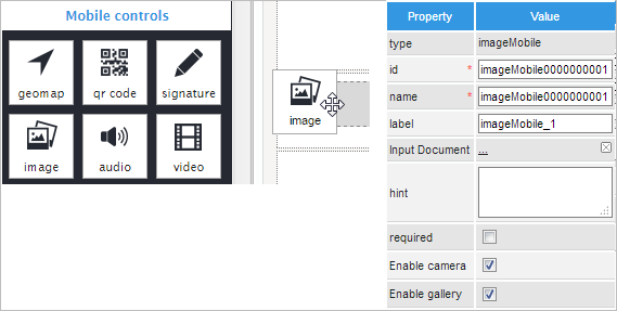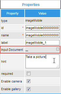 Check the Enable gallery property to allow you to use the device's gallery to choose a picture. If unchecked, the mobile app won't allow you to choose images from the gallery.