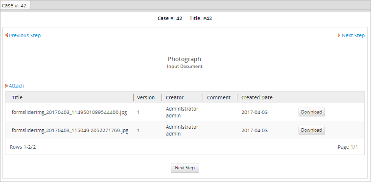 This means that the photo taken or uploaded with the control can be displayed at a later step inside an input document. One advantage of associating a photo control with an input document is that the input document interface can be used to view all the photos taken or uploaded in the case, as well as deleting and adding new versions if the user has the correct Process Permissions and versioning is enabled.
