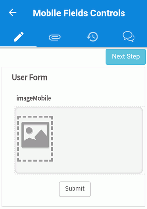 The app uses web-kit tools exclusively for Android and iOS to display the form fields, thus forms are not rendered the same way as in the web edition (in the preview of the designer or when running cases). The screenshot below shows the Image control running in the mobile app.