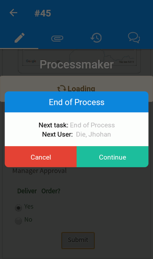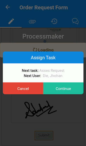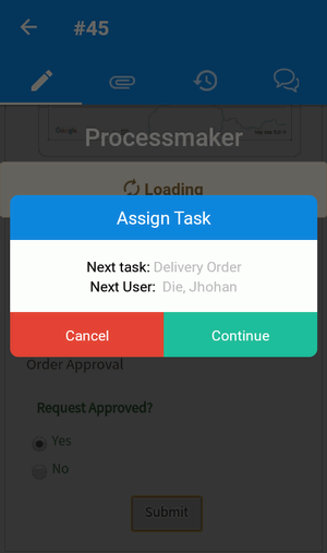 Tap on Continue to send the case to the next user, in this example is the same user: "Jhohan".