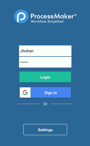 Assuming that ProcessMaker Mobile is already installed on your smartphone (if not, follow this guide to install it), access ProcessMaker Mobile and log in as one of the users assigned to the “Employees” group to start working with the "Purchase Request" process.