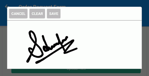 Tap on the "Signature" field to open a blank screen to draw a signature. Tap on the Clear button to clear the screen and start all over. Once ready, tap on the Save button.
