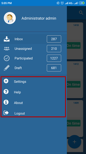 This option displays you the installed ProcessMaker Mobile version in your device. Go to the main menu by sliding the screen to the right. Tap the About option.