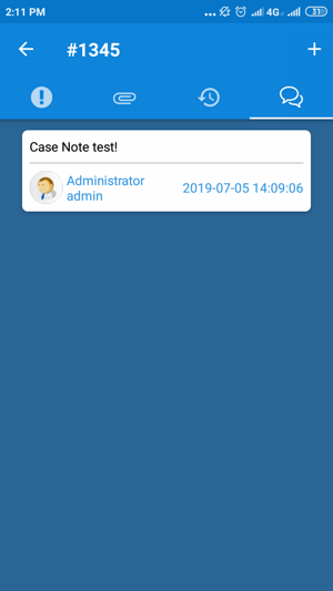 In the Case Note panel, tap the + icon located at the top-right side of the screen.