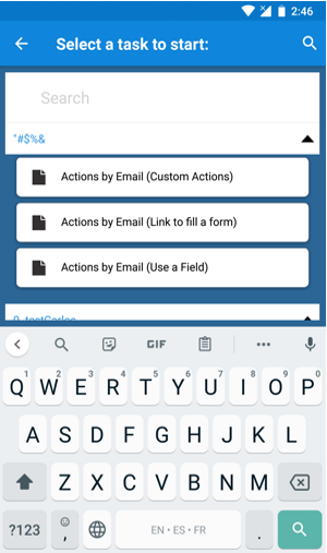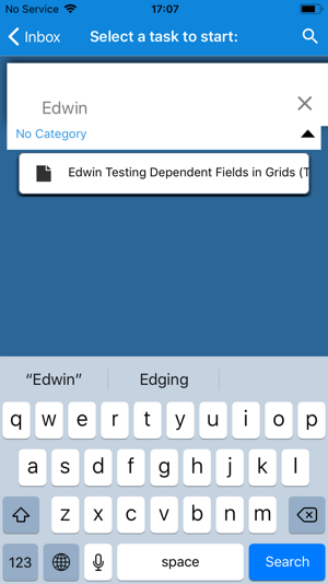 All of your available starting tasks of processes are listed on the screen. Tap a specific task to start a case or search for a process and then choose the desired task.