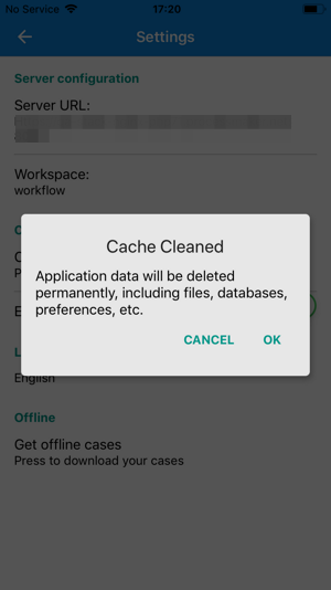 You can clean the app's cached data. Tap Clean Cache. After tapping Clean Cache, a confirmation message displays. Then, tap OK.