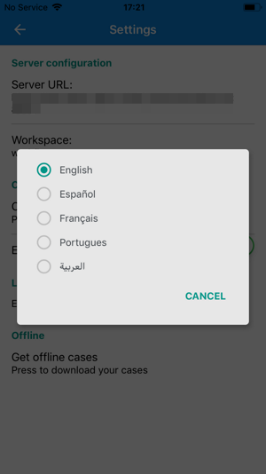 As a part of the server configuration, in the current field, type the ProcessMaker URL server such as http://192.168.1.1 or http://pm.example.com. Then, tap OK.