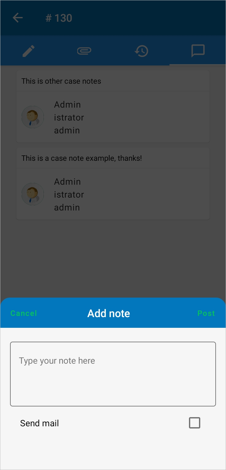 If the case is in the Inbox, Draft tray or creating a case, and the case has the relevant permission, you can add a note by following the next steps: