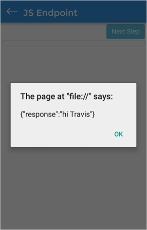 When the Dynaform is opened in the mobile app, the Dynaform created will appear showing the endpoint message added through the JavaScript code entered in the web version. See the example of the message that should appear on the mobile application below: