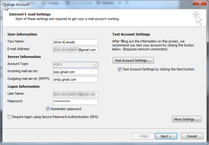Click on Test Account Settings... to test the new configuration.