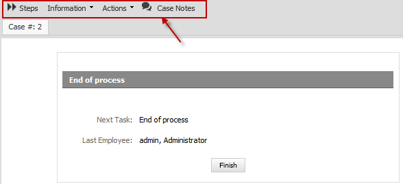 - Cases Menu with the following options Steps, Information, Actions, Cases Notes.