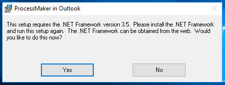 - Click Yes to redirect you to the .NET Framework download page, download the 3.5 version and install the .NET framework.