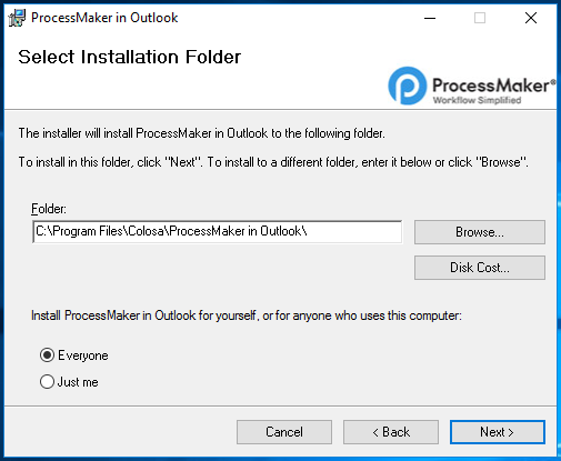 - Click Next and select a folder where the Outlook plugin will be installed.
