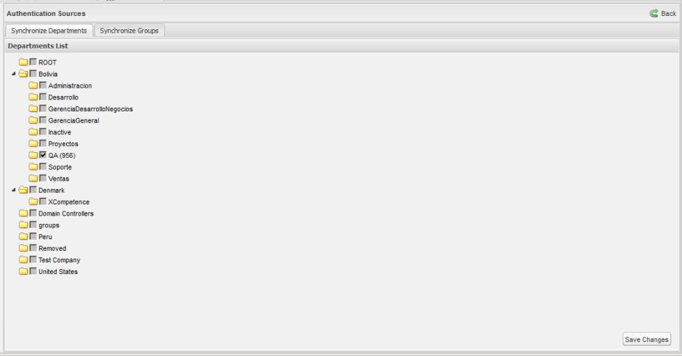 Once selected and / or deselect the departments, to save the changes it must be pressed button "Save Changes", which is located at the bottom right.