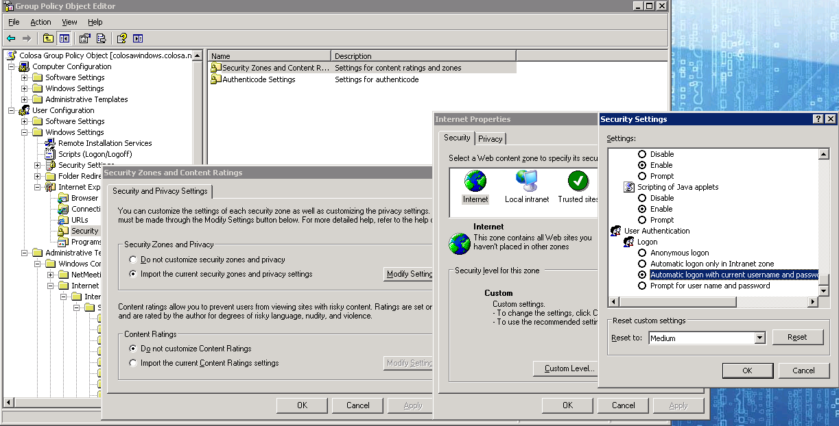 With the group policies it is possible to set by default the configuration required to enable the Windows Single SignOn for all computers that authenticate to the domain, so it can be avoided the manual configuration on each computer.