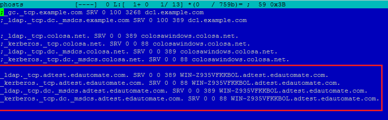 • To make sure the IP is pointing correctly, modify the hosts and add SRV record information that plexcel needs to connect to the Active Directory server, this file is usually located at /var/lib/plexcel.