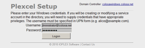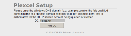 • Server Name: The server name needs to be a valid Active Directory server. (Load automatically from the plexcel) configuration).