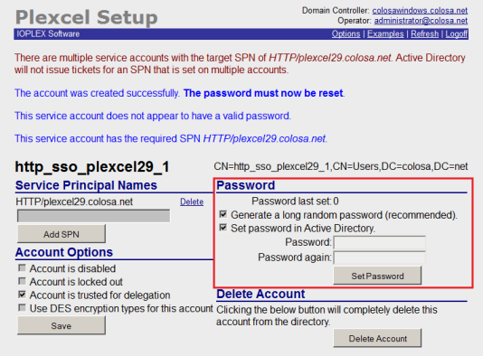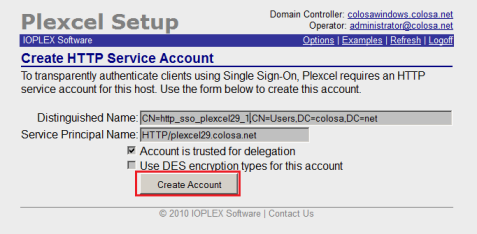 Create a new account, so Plexcel will be able to set a connection with the Active Directory server.
