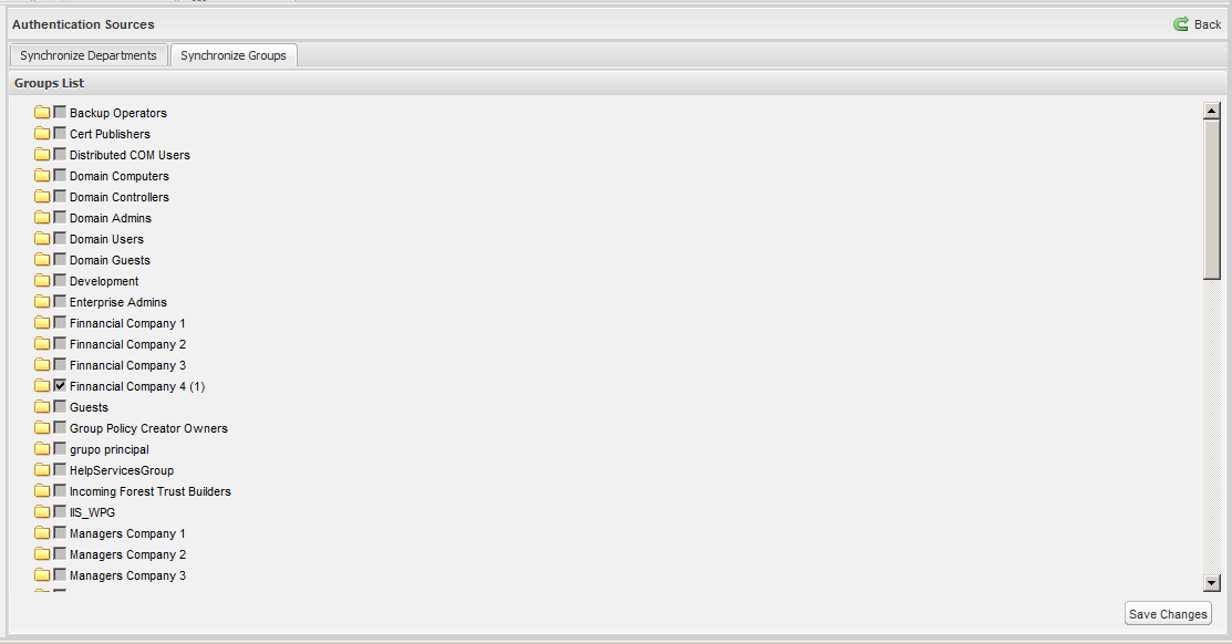 • Synchronize Groups: This link show the list of the groups in the Active Directory.