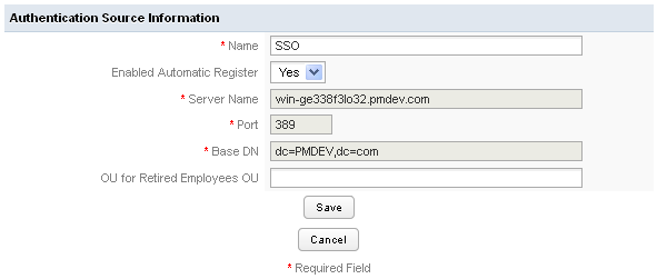 • OU for retiredEmployees OU: Specify the DN of an Organizational Unit where the user who was previous deleted from an Authentication Source will be moved. i.e CN=Jamie,DC=colser,DC=net. For more examples of constructing DN check this guide