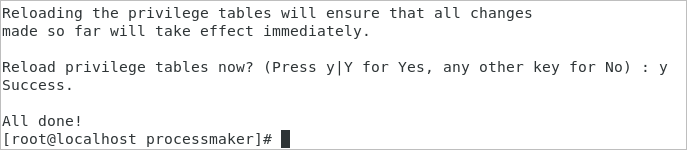 2. Use the mysql_secure_installation command to set up a secure database environment and establish a root password to use in the ProcessMaker installation.