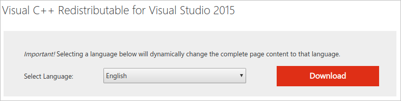 Go to Visual C++ redistributable packages for Visual Studio 2015.