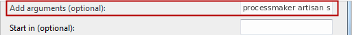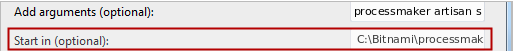 - In the Startup directory field, enter the path where ProcessMaker is installed, usually C:\opt\processmaker.