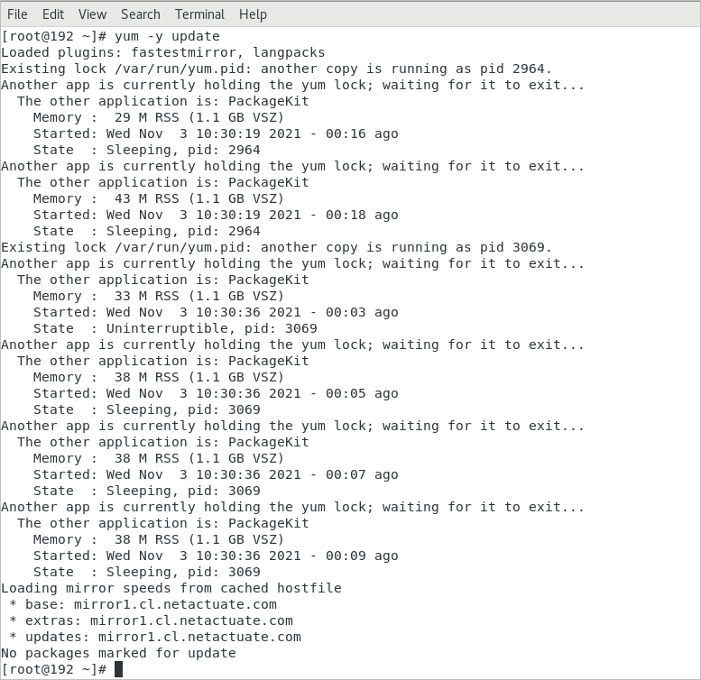Warning: Depending on your CentOS version, the server update should take a long time to complete the update.