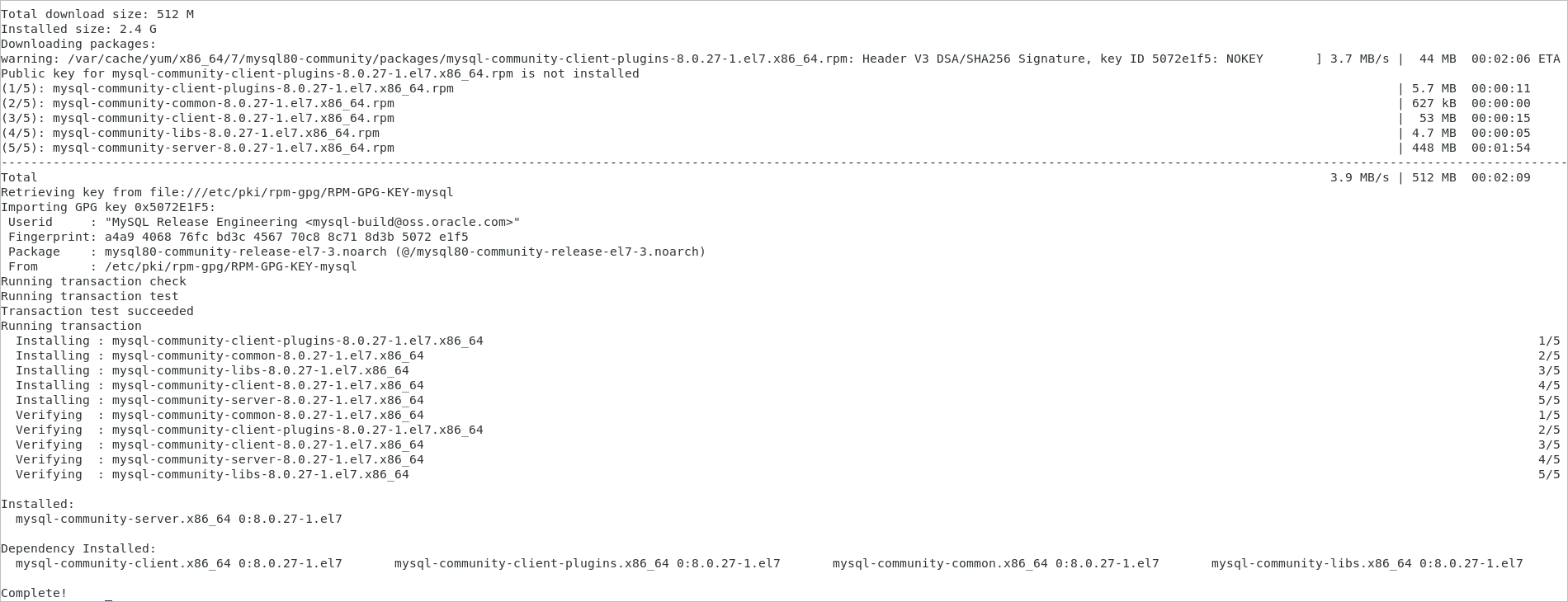 | CentOS/RHEL 7.x (Latest Available Version) | MySQL 8.0 | 7.4.x |