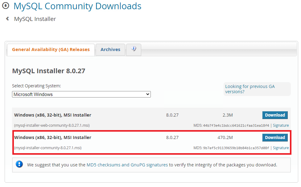 | Microsoft Windows Server 2022 | MySQL 8.0 | 8.1.x |
