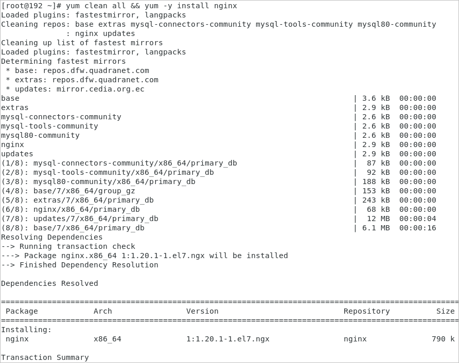 2. Add the next lines in the repository file: /etc/yum.repos.d/nginx.repo