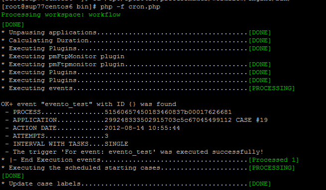 If a cron hasn't been programed to be executed, then it is possible to execute it manually. Execute the cron as the image below, and the characteristics for the event set will display: