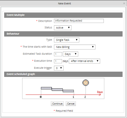 - If an event has an Interval Time of 5 days and its Timer is set to 8 days "After the interval starts", then event is anticipated to execute 3 days after the end of the task(s).