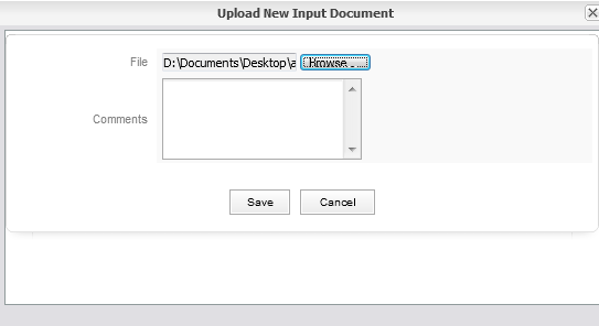 If it is a digital document, click on the Attach link and then browse for the file to upload. A comment about the Input Document can be added in the Comments field. Then click on Save to add the new Input Document.