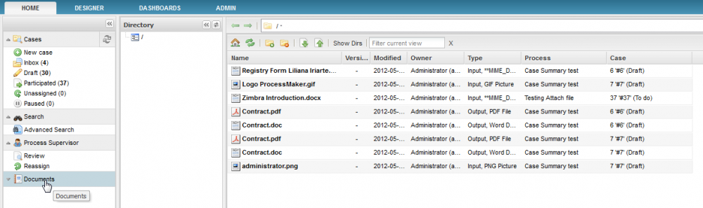 An Input Document is a box to hold a file or files associated with a particular case. These files can be text documents, spreadsheets, images or any other kind of file. An Input Document can be a hard copy (which has been printed out and stored in a filing cabinet), a digital file which is uploaded to the case, or both. An Input Document can be added as a step in a task or as a file object in a DynaForm.