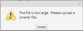 If the file uploaded is bigger than the size specified the following message is shown: